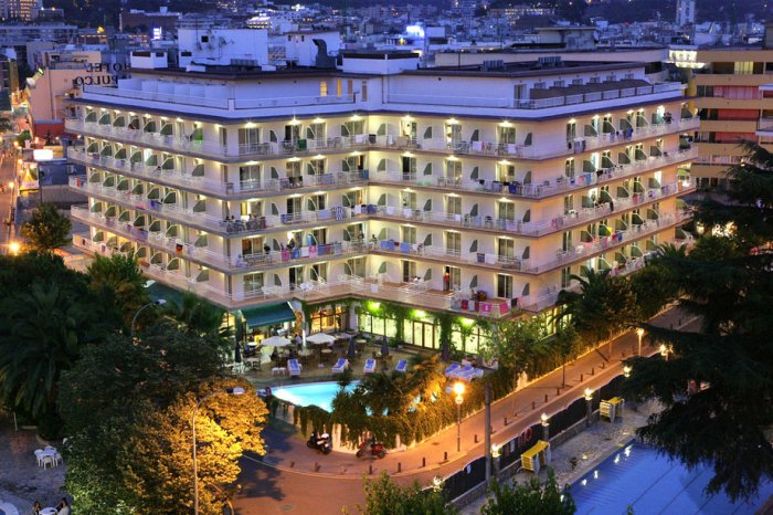 Viesnīca: atrodas 100 km no Barselonas lidostas, 150 m no Loretas de Maras pilsētas centra, 400 m no pludmales. Uzcelta 1970. gadā, renovēta 2009. gadā. Viesnīca – viens 6 stāvu korpuss: 165 standard double room (daļa numuru ar king size gultu, maks. 4 cilv.); 24 single room (king size gulta, maks. 2 cilv.); 12 superior room (guļamistaba bez durvīm, viesistabas zona, maks. 4 cilv.).
