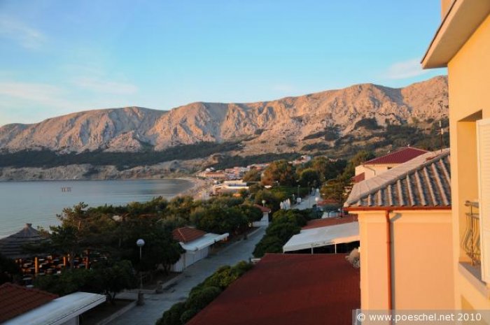 Baška. Jūras krastā, apmēram 30 m līdz oļu pludmalei, apmēram 300 m līdz kūrorta centram, apmēram 40 km līdz Rijekas lidostai.